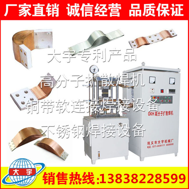 GKH高分子扩散焊机采用电热压焊接已经成为主流,主要应用金属材料不锈钢、母线伸缩节、软连接导电产品焊接品种广泛,寿命长。大宇扩散焊控制精确、工艺适应性广且节能、高效、稳定、操作简便,能事先定电流、定电压、定功率、定脉宽、定温控制,时间调节分辨率高,反馈控制的响应速度快,输出稳定性*。扩散焊焊接计数功能,适用于产品质量跟踪,加热设定,带电流缓升缓降功能,时间设定范围宽,适用复杂焊接过程需要;具有电流失常、监控值超限、网压超限、过热等故障诊断与报警功能;较强的外部通讯功能,焊接结束、故障、计数信号,便于自动焊使用;响应速度快,通电时间控制周期短,工作效率高。购买大宇扩散焊,我方还对用户维护及管理免费提供必要的产品方面技术培训,培训内容包括产品调试;产品使用中的注意事项;产品使用维护的基本要求;建立用户档案;长期跟踪产品使用情况;帮助用户建立完善的生产工艺并及时为用户提供*面的技术支持。